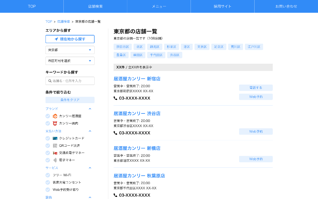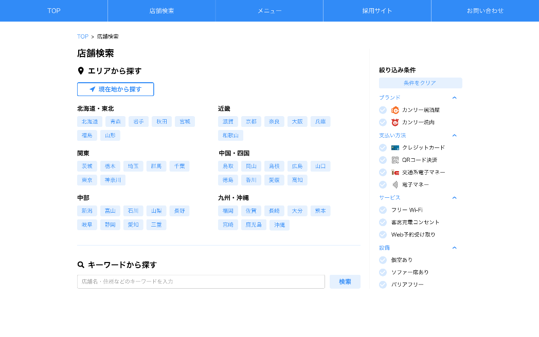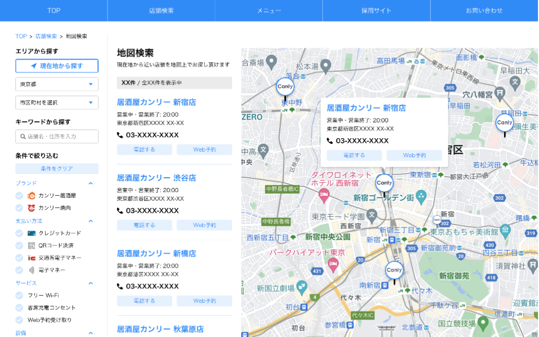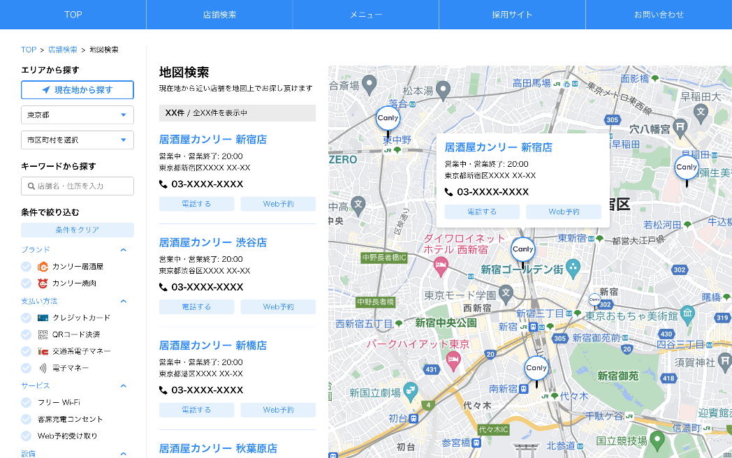 HP来訪者の実店舗への来訪導線を最適化するHPが「カンリー店舗検索ページ」です。