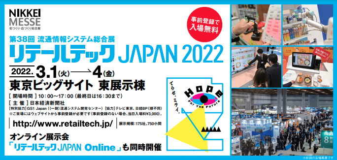概要:第38回流通情報システム総合展「リテールテックJAPAN 2022」を3月1日(火)から4日(金)までの4日間、東京ビッグサイトで開催します。人手不足や物流などの構造変化に伴う流通DXが喫緊の流通・小売業界向けにソリューションを提供する代表的な企業が一堂に集結。多数の体験型展示も行います。