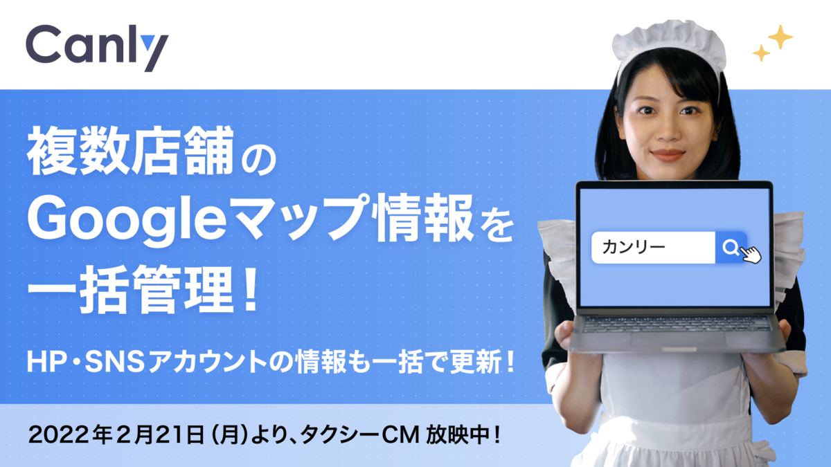 Googleビジネスプロフィール・HP・各SNSの一括管理サービス「Canly(カンリー)」の開発・提供を行う株式会社カンリー(所在地:東京都渋谷区、代表取締役:辰巳 衛,秋山 祐太朗)が、2022年2月21日(月)よりタクシーCMの放映を開始することとなりましたのでご案内いたします。
